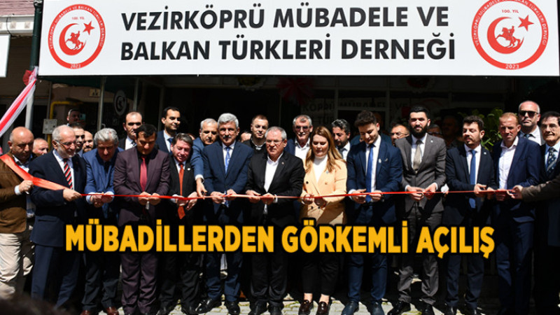 Vezirköprü Mübadele ve Balkan Türkleri Derneği açılışı renkli anlara sahne oldu.   Vezirköprü ilçesinde yaşayan mübadillerin kurduğu Vezirköprü Mübadele ve Balkan Türkleri Derneği açılışı gerçekleştirildi.   Köprülüler Caddesi eski Hastane yolu üzerindeki yerinde düzenlenen derneğin açılışında davul zurna eşliğinde Balkan Kültürünü yansıtan halk oyunu sergilendi.   Açılışta konuşan Vezirköprü Mübadele ve Balkan Türkleri Derneği Başkanı Serkan Arslan; "Derneğimizin kuruluş amacı mübadele kültürünü yaşatmak, geliştirmek ve gelecek kuşaklara en güzel şekilde taşımaktır. Bu bizim 100 yıl önce bu topraklara göç etmiş atalarımıza karşı en kıymetli görevimizdir." dedi.   Vezirköprü'de hatırı sayılır mübadil bulunduğuna dikkat çeken Karadeniz Rumeli Dernekleri Federasyonu Başkanı Salih Meriç; "Karadeniz Bölgesinde 10 ilde, Orta Karadeniz'de 4 ilde faaliyet gösteren federasyonumuza üye olan Vezirköprü Mübadele ve Balkan Türkleri Derneğinin açılışındayız. Vezirköprü'de hatırı sayılır şekilde mübadil bir nüfus var. Samsun ilinde yaklaşık 250 bin mübadil nüfus var. Türkiye genelinde ise Balkanlardan göç eden yaklaşık 35 milyon nüfus bulunmakta. Bugün açılışını yaptığımız derneğimiz faaliyetlerinin hayırlı uğurlu olmasını temenni ediyorum." dedi.   Programa katılan CHP, İYİ Parti ve Memleket Partisi milletvekili adayları da sırasıyla selamlama konuşmalarını yaptı. Konuşmalar sonrasında açılış kurdelesi katılımcılar ile birlikte kesildi.