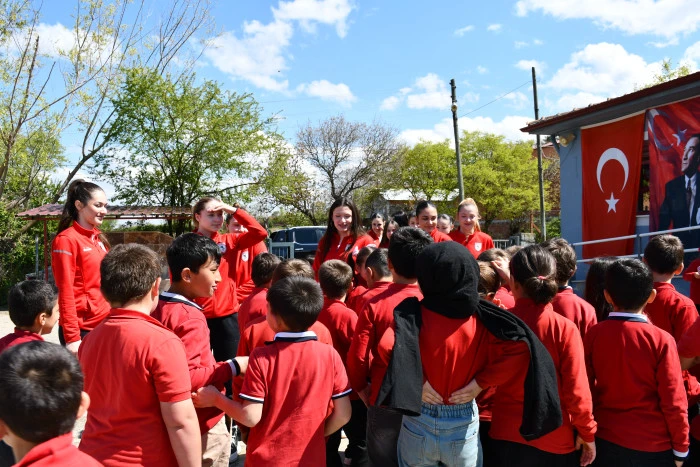 Ziyaretin devamında okul bahçesinde düzenlenen etkinlikte sporcular ve öğrenciler birlikte vakit geçirdi. Oyunların oynandığı programda çocukların neşeli anları dikkat çekti.