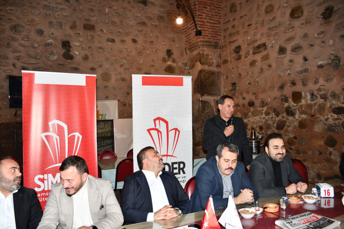 Tarihi Bedesten Üçler Restoranda organize edilen akşam yemeğine Vezirköprü Kaymakamı Özgür Kaya, Belediye Başkanı Murat Gül, Havza Belediye Başkanı Murat İkiz, AK Parti Havza İlçe Başkanı Aziz Pekşen, AK Parti Kavak İlçe Başkanı Onur Bakır, SİMDER Yönetim Kurulu Başkanı Sezgin Aydın, Yönetim Kurulu Üyeleri ve Vezirköprü ilçesindeki inşaat sektörü temsilcileri bir araya geldi.