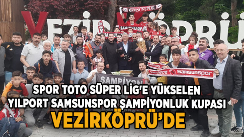 Yılport Samsunspor Genel Müdürü ve İcra Kurulu Üyesi Soner Soykan ve İcra Kurulu Üyesi Suat Çakır tarafından Vezirköprü’ye getirilen şampiyonluk kupası taraftarlarca sevinçle karşılandı.