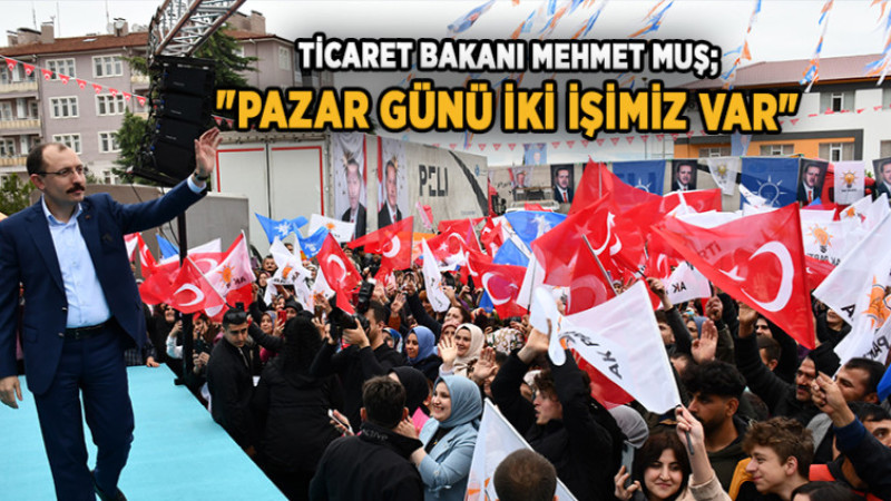 Cumhurbaşkanını ve meclis çoğunluğunun desteklenmesi gerektiğine dikkat çeken Ticaret Bakanı Mehmet Muş; "Pazar günü seçimde iki önemli işimiz var. Birincisi Recep Tayyip Erdoğan'ı güçlü şekilde desteklemek ve meclis çoğunluğunu da sağlamak. İkincisi ise bir Pazar temizliği ile bu siyaset anlayışını da temizlemek. Tabi bunların yanı sıra sandıklara da sahip çıkacağız ve sayımda görevimiz olsun ya da olmasın gözlemci olacağız." dedi.