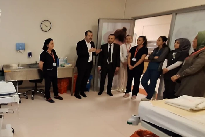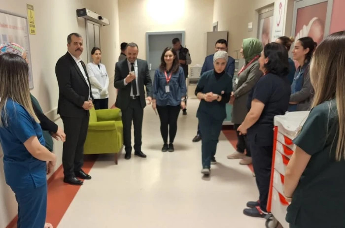 Program kapsamında hastane birimlerini de gezen Kaymakam Özgür Kaya, başhekim başta olmak üzere hastane yönetimini ve ilgili servislerde görev yapan personellerden bilgi alarak çalışmalarında başarılar diledi.