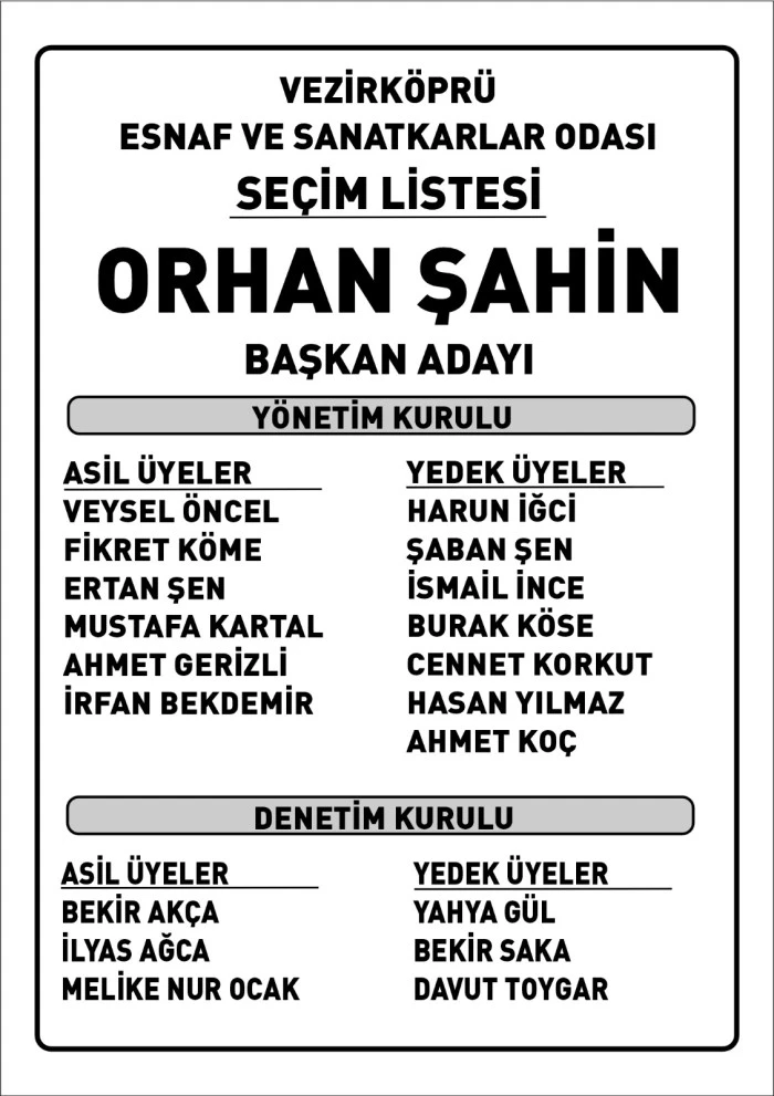 Öte yandan Orhan Şahin başkanlığındaki Yönetim Kurulu şu isimlerden oluştu: