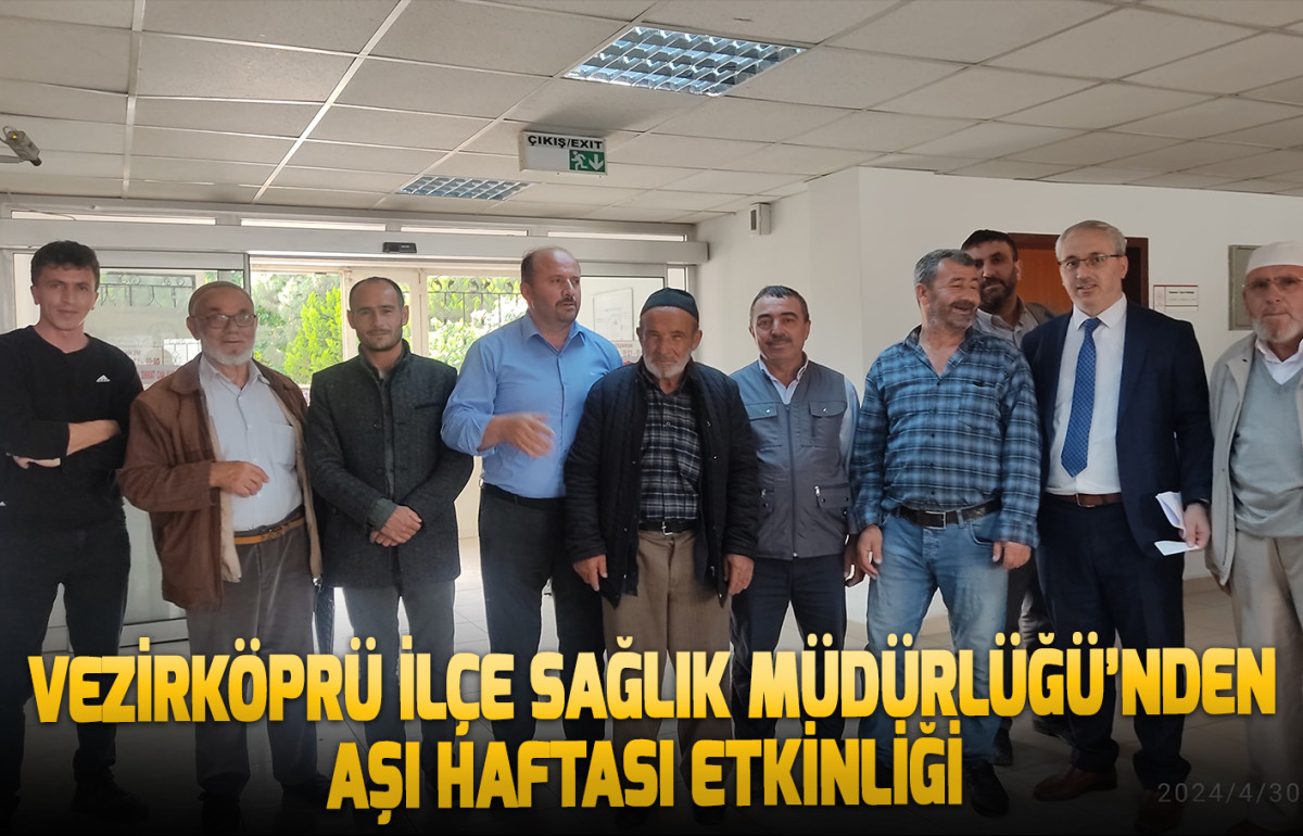 Her yıl 24-30 Nisan Aşı Haftası dolayısıyla, Vezirköprü İlçe Sağlık Müdürlüğü tarafından bu yıl Hac vazifesini yerine getirecek vatandaşlara aşıları yapılarak, müdürlük personeli tarafından aşılar hakkında bilgilendirme ve broşür dağıtımı yapıldı.