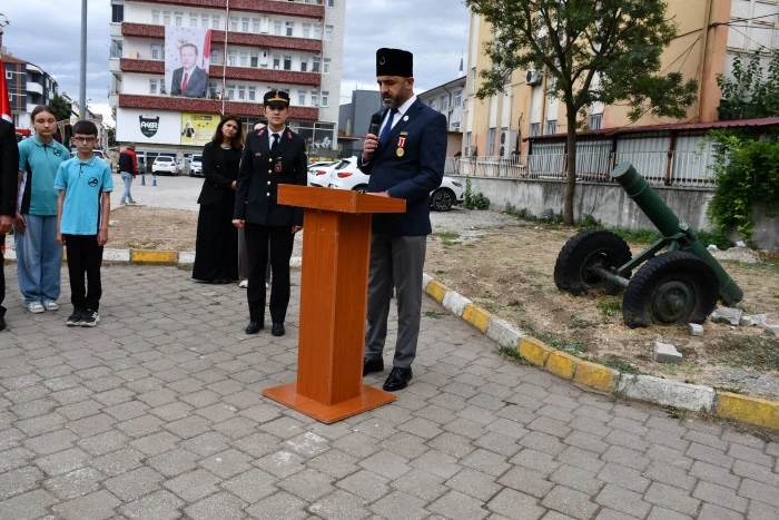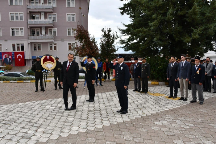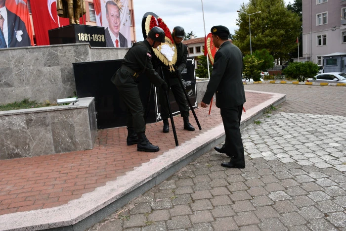 Tören, Atatürk Anıtı’na Kaymakamlık, Garnizon Komutanlığı ve Belediye Başkanlığı çelenklerinin sunulmasıyla başladı. Ardından saygı duruşu yapıldı ve İstiklal Marşı okundu.