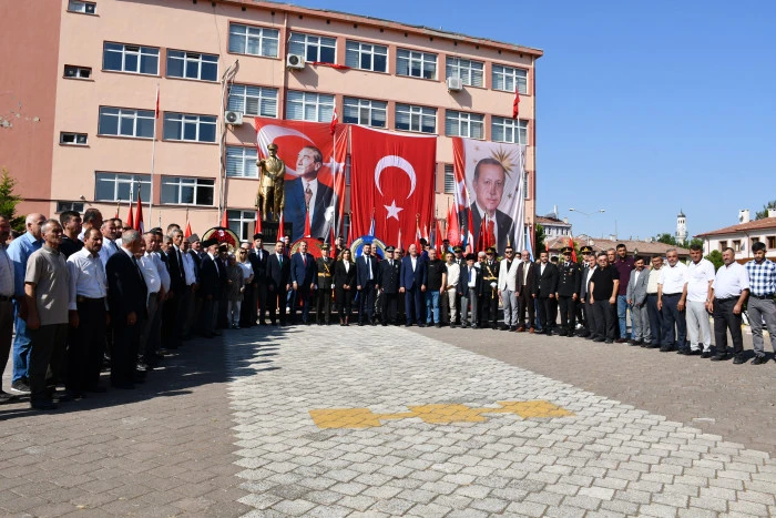 30 Ağustos Zafer Bayramı Programına Kaymakam Özgür Kaya, Garnizon Komutanı Üsteğmen Feride Paşayiğit, Belediye Başkanı Av. Murat Gül, Cumhuriyet Başsavcısı Vekili Cumhuriyet Savcısı Buse Altuğ, İlçe Emniyet Müdür Vekili Başkomiser Mustafa Yaşar, İlçe Karakol Komutanı Teğmen Seyfettin Turğut, İlçe baro temsilcisi Av. Oğuz Bakır, Gençlik ve Spor İlçe Müdürü Mehmet Uyar, İlçe Milli Eğitim Müdürü Resul Özata, Ak Parti İlçe Başkanı Muzaffer Çil, CHP İlçe Başkanı Nazım Kale, Kurum ve kuruluşların müdürleri ile vatandaşlar katıldı.