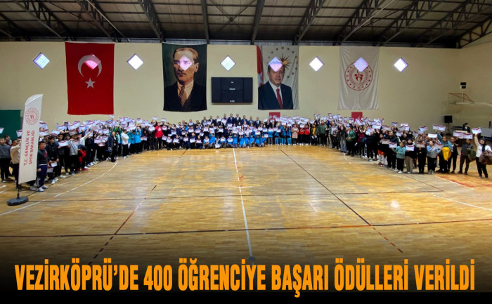 Vezirköprü’de düzenlenen okul sporları ödül töreninde farklı branşlarda başarı elde eden 400 öğrenciye ödül verildi. Ödül törenine Vezirköprü Kaymakamı Özgür Kaya, ilçe protokolü, okul müdürleri, öğretmenler ve öğrenci velileri katıldı.