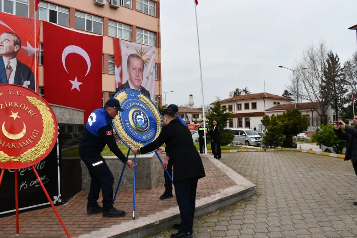 Tören, saygı duruşu ve İstiklal Marşı’nın okunmasıyla başladı. Ardından Kaymakamlık adına Kaymakam Özgür Kaya, Garnizon Komutanlığı adına Garnizon Komutanı Yunus Emre İncesu ve Belediye Başkanlığı adına Başkan Murat Gül tarafından Atatürk Anıtı’na çelenk sunumu gerçekleştirildi.