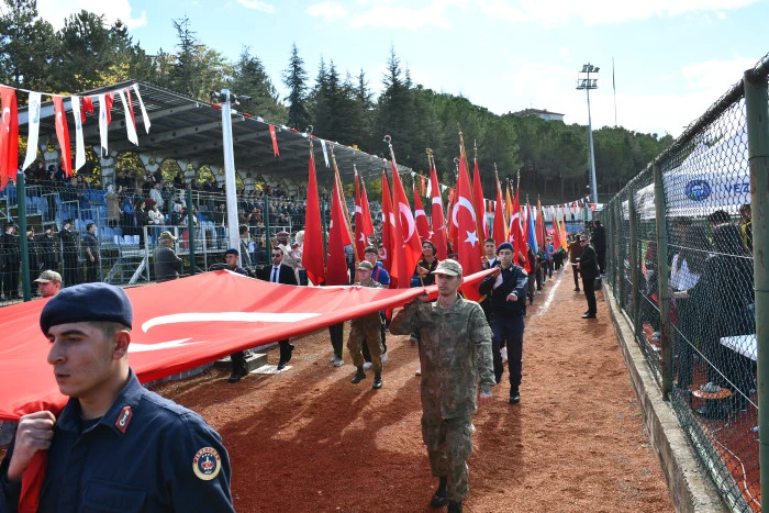 Saygı duruşu ve İstiklal Marşı’nın okunmasıyla başlayan törende konuşan Kaymakam Özgür Kaya, Cumhuriyet’in Türk milletinin bağımsızlık ve egemenlik mücadelesinin en büyük eseri olduğunu vurguladı.