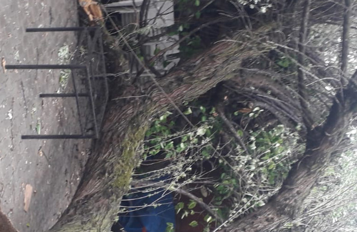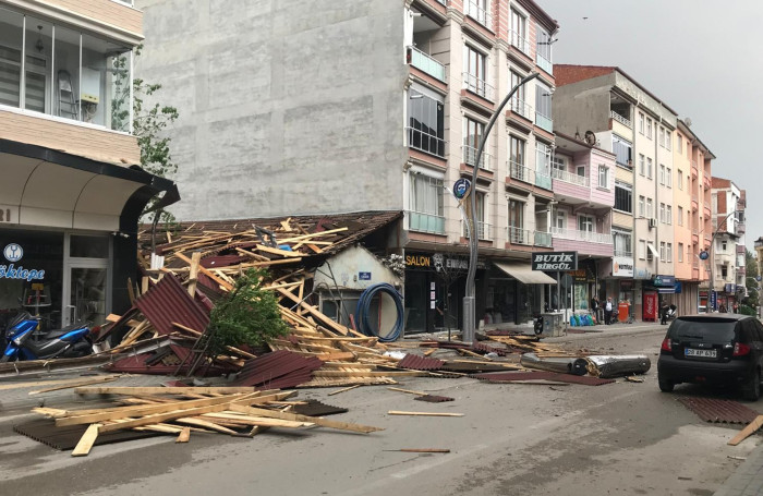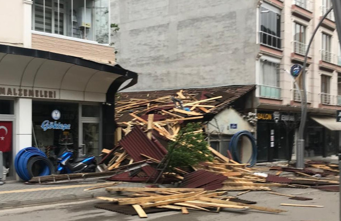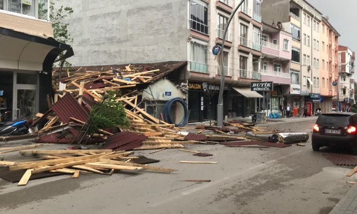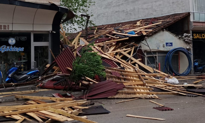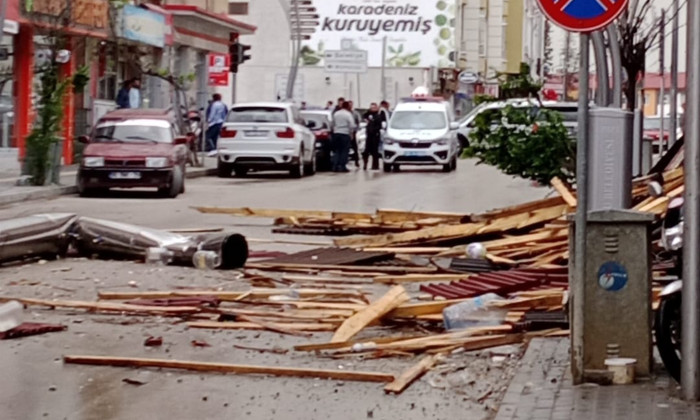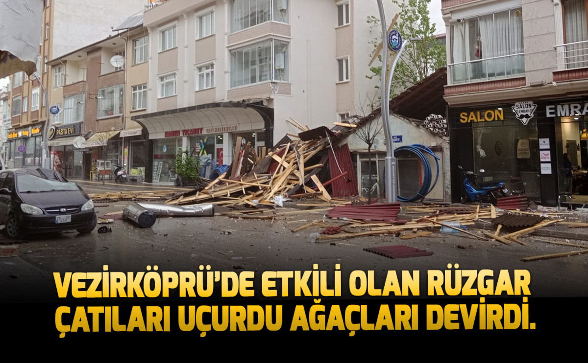 Vezirköprü ilçesinde etkili olan fırtına çatıları uçurdu ağaçları devirdi.