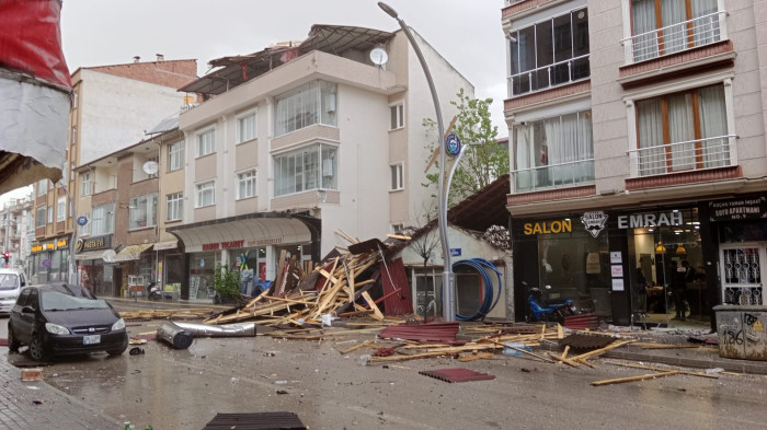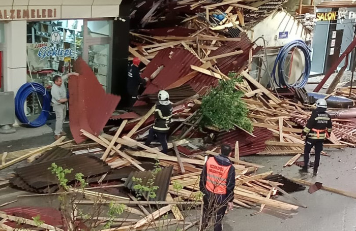 Vezirköprü'de etkili olan rüzgar çatıları uçurdu ağaçları devirdi.