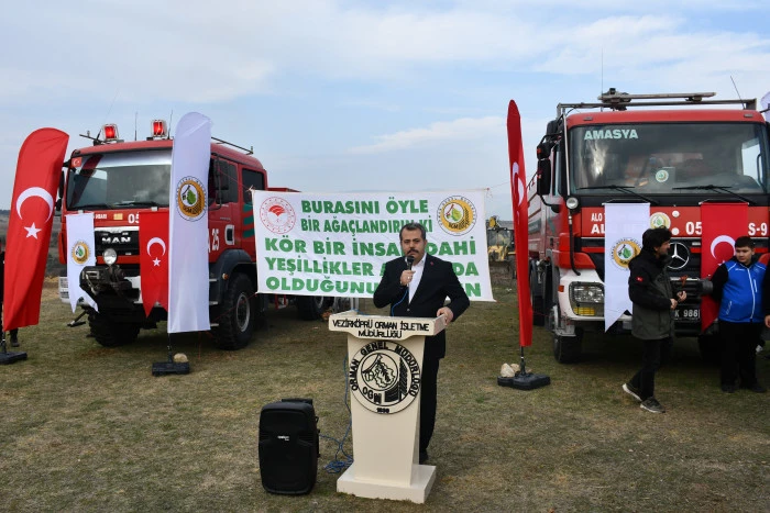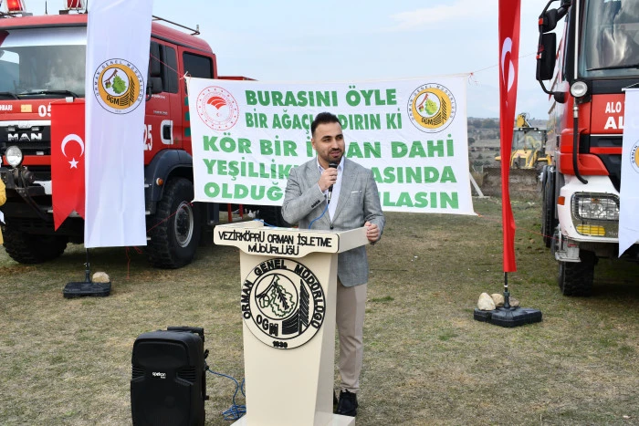 Aziz şehitlerimiz için saygı duruşu ve İstiklal Marşı’nın okunmasıyla başlayan programda açılış konuşmasını gerçekleştiren Vezirköprü Orman İşletme Müdürü Mecit Koçak:” Bugün Milli Ağaçlandırma günü ama sadece bugün fidan dikmiyoruz. Türkiye’de yılda yaklaşık 350 milyon fidan dikiliyor. Fidanlar, diğer canlılar gibi hareket edemiyorlar. Yani diktiğimiz gibi kalıp oradaki yağışa maruz kalıyorlar. Belli bir süre sonra ağaçların kuruduğunu görebiliyoruz. Bu yüzden ağaç dikerken bilinçli olmalıyız.” İfadelerini kullandı.
