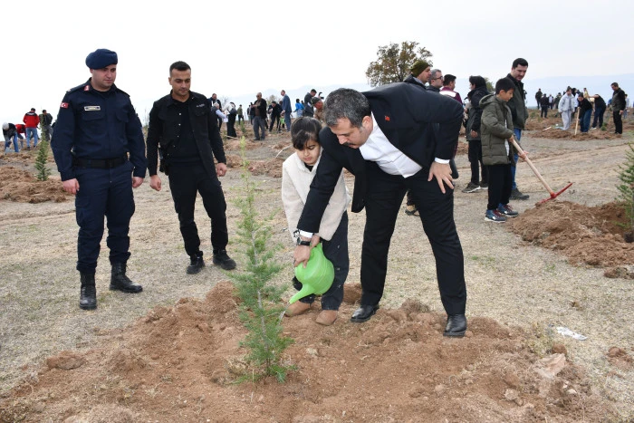 Vezirköprü Orman İşletme Müdürlüğü tarafından organize edilen 11 Kasım Milli Ağaçlandırma Günü etkinlikleri kapsamında Vezirköprü’de binlerce fidan toprakla buluştu. Başta Vezirköprü İlçe Kaymakamı Özgür Kaya, Belediye Başkanı Murat Gül, Cumhuriyet Başsavcısı Sadullah Gümüş olmak üzere, protokol üyeleri, Orman İşletme Müdürlüğü Personeli, Gençlik Merkezi Gönüllüleri ve öğrenciler belirlenen bölgeye fidanlar dikti.