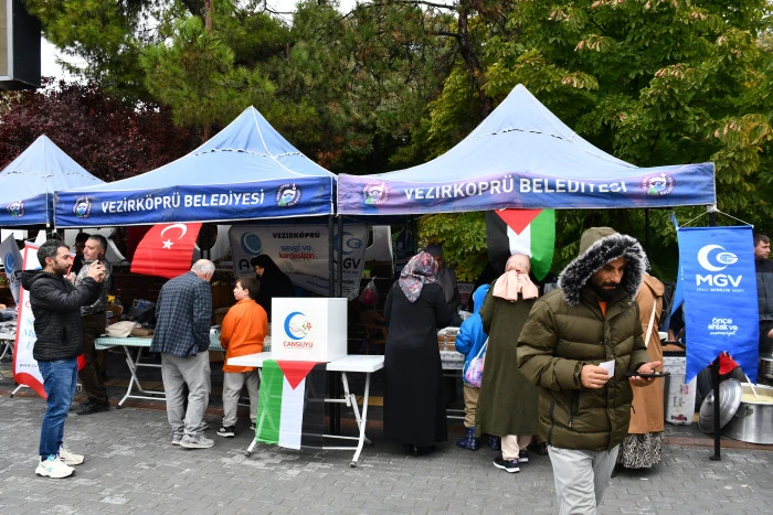 Köprülü Mehmet Paşa Parkı önünde kurulan çarşıda giyim eşyaları, hediyelik ürünler ve kadınların evlerinde hazırladığı çeşitli hamur işleri satışa sunuldu. Vatandaşlar, ürünlerden satın alarak Filistin halkına destek olma fırsatı buldu.