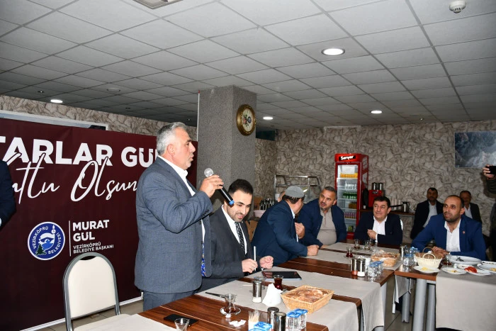Program, kahvaltı ikramının ardından yapılan yemek duası ile devam etti. Etkinlikte Belediye Başkanı Murat Gül bir konuşma yaptı. Gül, muhtarların yerel yönetimlerin en önemli paydaşları olduğuna vurgu yaparak, “Muhtarlarımız, vatandaşlarımızla devlet arasında köprü görevi üstleniyor. Vezirköprü’nün gelişimi için muhtarlarımızla birlikte çalışmayı sürdüreceğiz. Tabi bir mahallenin durumunu en iyi o mahallenin muhtarı bilir. Muhtarımızda mahallenin durumunu, eksiklerini ve ihtiyaçlarını bize bildirirse bizde ekibimizle birlikte ne yapabiliriz, nasıl yapabiliriz diye bir çalışma yapıp elimizde geleni yaparız. Buna bağlı olarak bu tip organizasyonları daha sık yapmak istiyoruz. Tabi bugün burada olmamızın temel sebebi bütün muhtarlarımızın Muhtarlar Gününü kutluyor, Rabbimden nicesini temenni ediyorum.” İfadelerini kullandı.