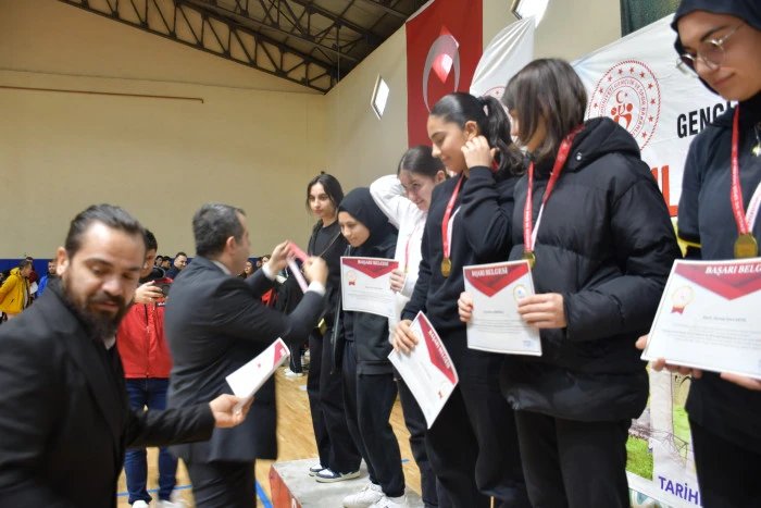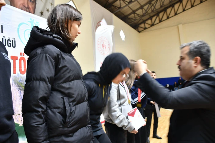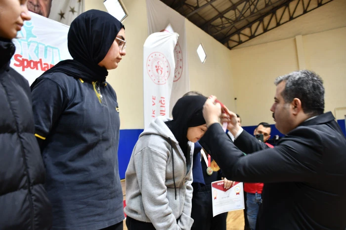 Konuşmaların ardından, ilçede farklı branşlarda düzenlenen okul sporları müsabakalarında derece elde eden sporculara madalya ve kupaları protokol üyeleri tarafından takdim edildi.