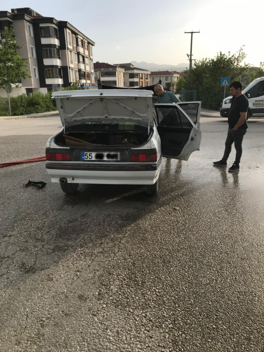 Vezirköprü ilçesi Esentepe Mahallesinde bir otomobilde yangın çıktı.