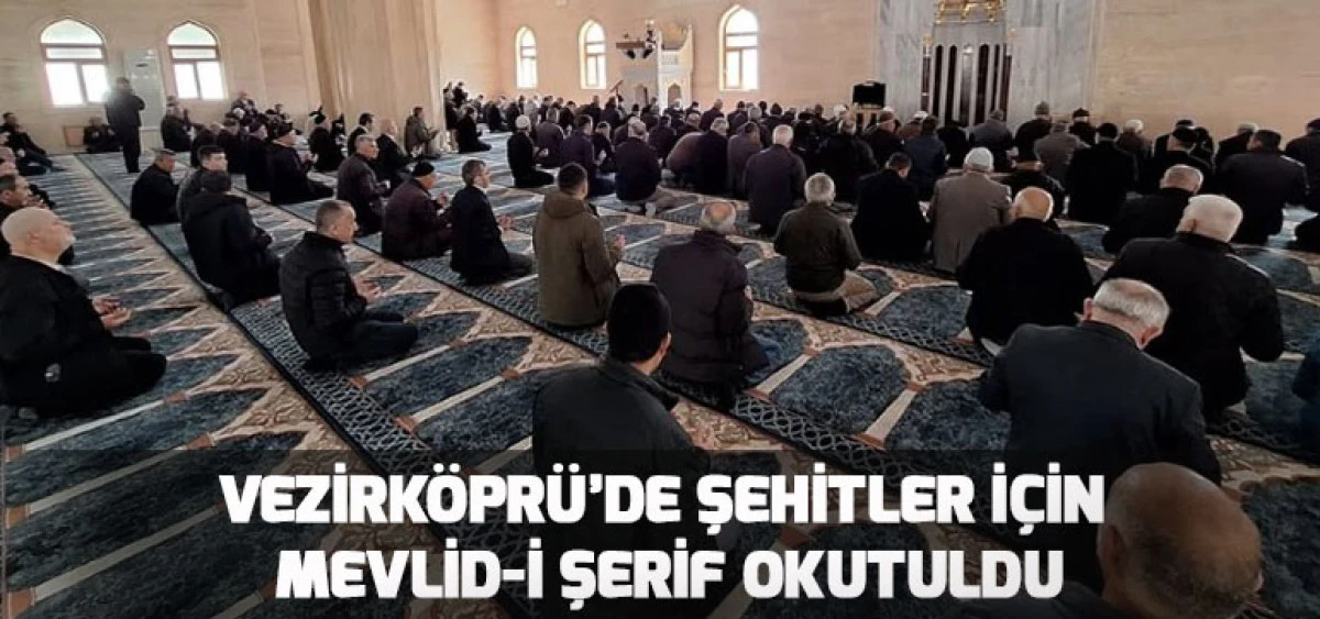 Vezirköprü Kaymakamlığı tarafından Köprülü Mehmet Paşa Camii’nde şehitler ve ebediyete irtihal eden gaziler için Mevlid-i Şerif okutuldu. Programın ardından protokol üyeleri Karabük, Arıca ve Gömlekhisar mahallelerindeki şehitlikleri ziyaret etti.