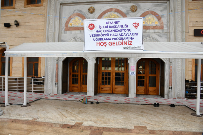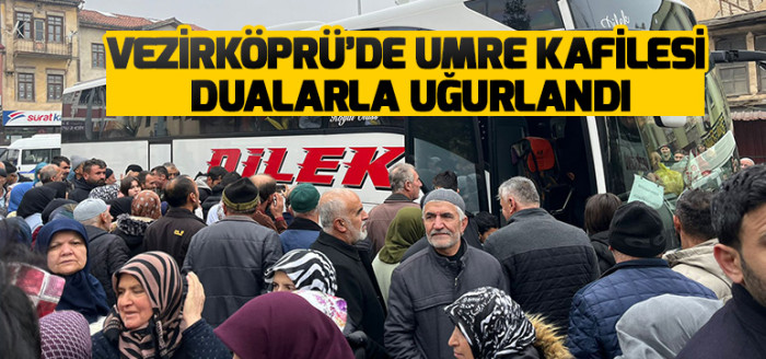 Vezirköprü’de, Diyanet İşleri Başkanlığı organizasyonu ile umre ziyareti gerçekleştirecek 117 kişilik umre kafilesi için uğurlama programı organize edildi. İlçe Merkezi’ndeki Köprülü Mehmet Paşa Camii önünde 117 kişilik kafile için düzenlenen törene İlçe Müftüsü Naci Yalçınkaya, Gençlik ve Spor İlçe Müdürü Mehmet Uyar ve yakınlarını kutsal topraklara yolcu etmek isteyen vatandaşlar katıldı.