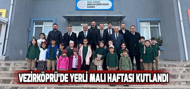 Yerli Malı Haftası münasebetiyle Vezirköprü’de program düzenlendi. Abdullah Şükrü Uluçay İlkokulu tarafından organize edilen etkinliğe İlçe Kaymakamı Özgür Kaya, Milli Eğitim Müdürü Resül Özata, Gençlik ve Spor İlçe Müdürü Mehmet Uyar, Vezirköprü Devlet Hastanesi Dr. Mevlüt Güven, kurum amirleri, okul yöneticileri, öğretmenler ve öğrenciler katılım sağladı.