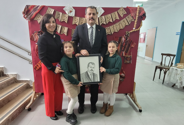 Öğrenciler tarafından hazırlanan Özgür Kaya portresi, kendisine takdim edildi.