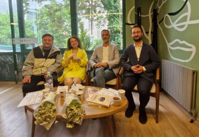 Metinler arası Kitap Yayınevinin Ankara Walker's Kültür ve Sanat Kafe'de düzenlediği "Şairler Buluşması" etkinliginde, yazar Çağın Özbilgi, Okan Alay, yazar Hatice Tarkan Doğanay ve Yayınevi sahibi Mahmut Yıldırım ile okuyucular ile buluştu.