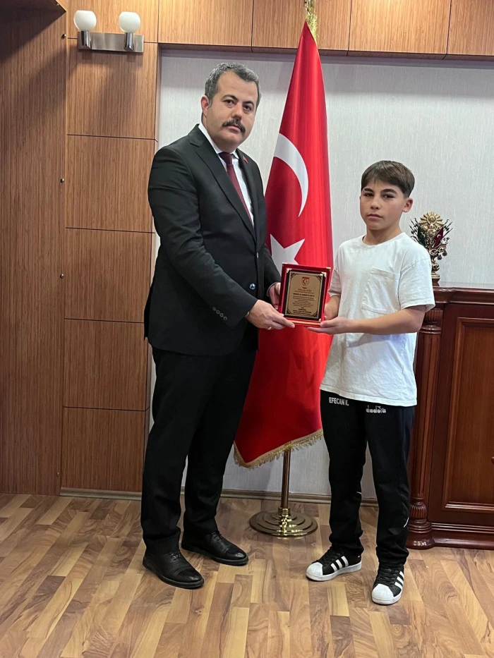 Kaymakam Kaya, derece elde eden sporcuları tek tek tebrik ederek plaket takdiminde bulundu.
